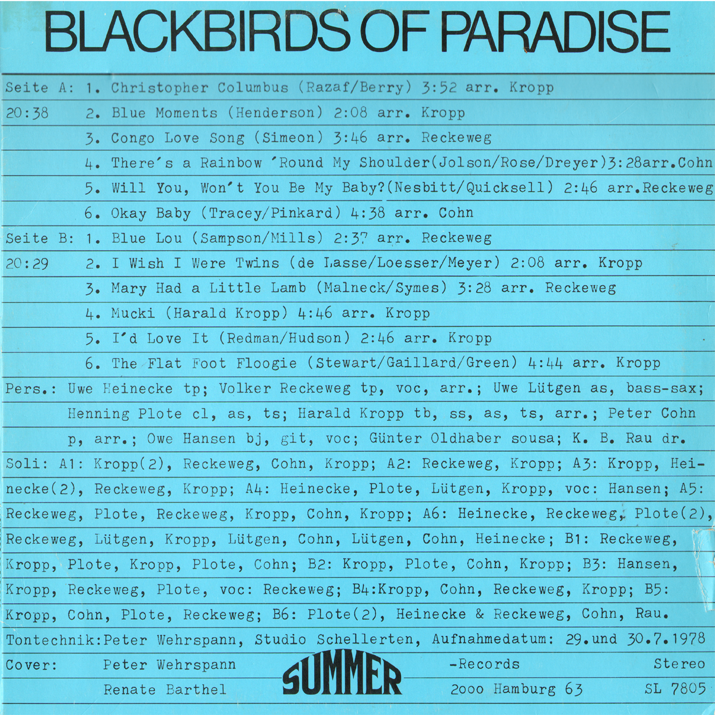 ![]() | Blackbirds Of Paradise | Blackbirds Of Paradise | 1 | LP | J002622 | Summer | SL7805 | |