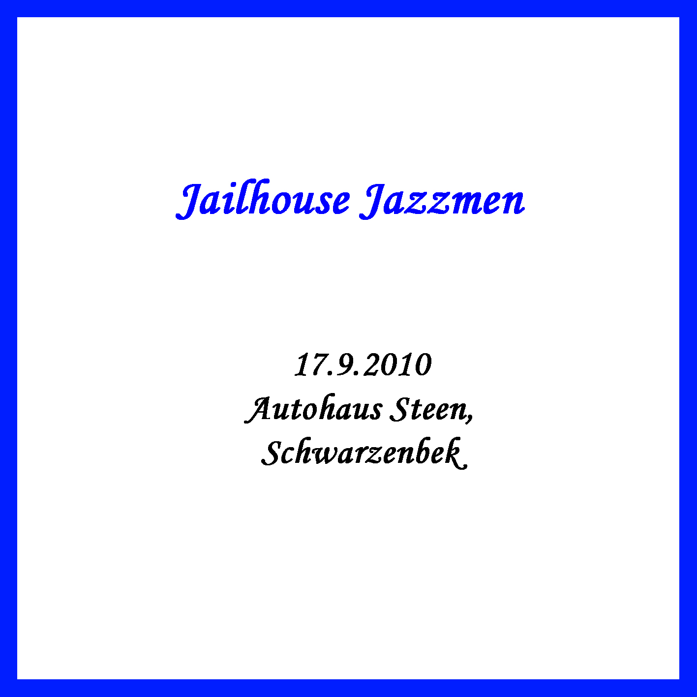 ![]() | Jailhouse Jazzmen | 17.9.2010 Autohaus Stehen, Schwarzenbek | 1 | MC | J008096 | Privat Aufnahme | ||