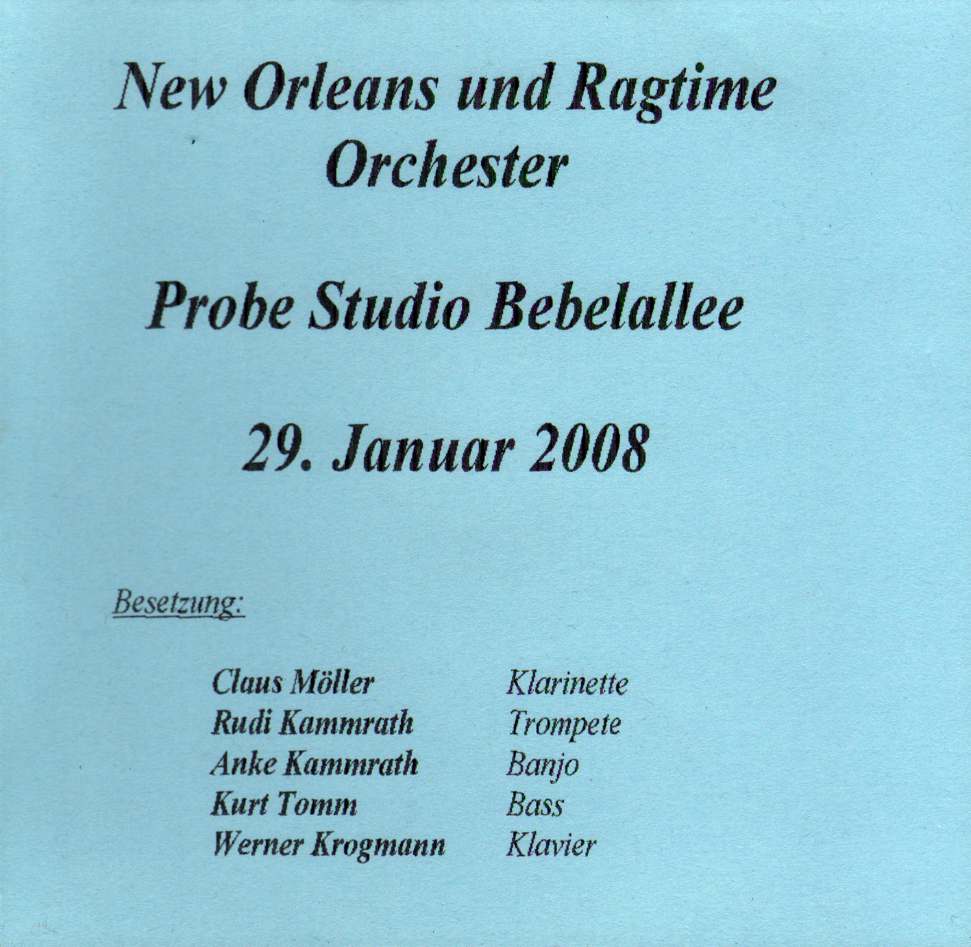 ![]() | New Orleans & Ragtime Orchester | Probe Studio Bebelallee 29.1.2008 | 1 | CD | J009361 | Not On Label |