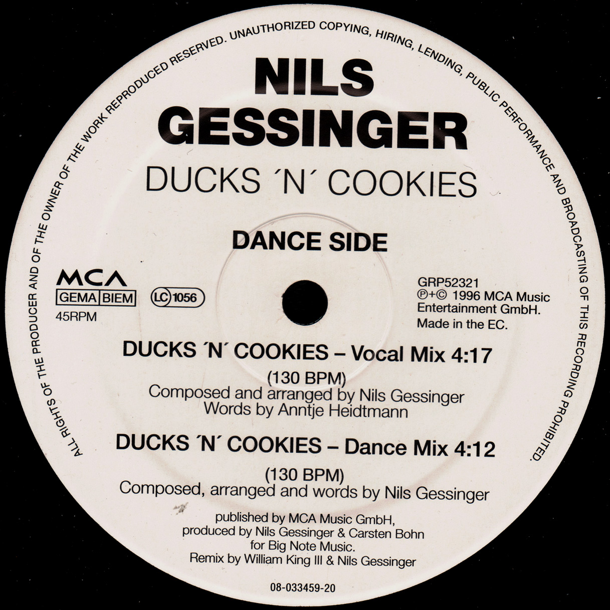 ![]() | Nils Gessinger | Ducks 'N' Cookies | 1 | MS | J010896 | MCA Records | GRP52321 | |