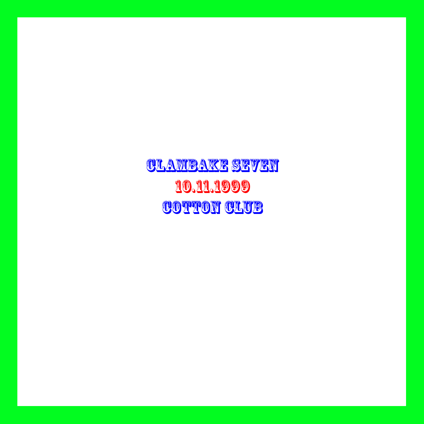 ![]() | Clambake Seven | Im Cotton Club 1999-11-10 | 2 | MD | J010768 | Not On Label | Privataufnahme K.P. | |